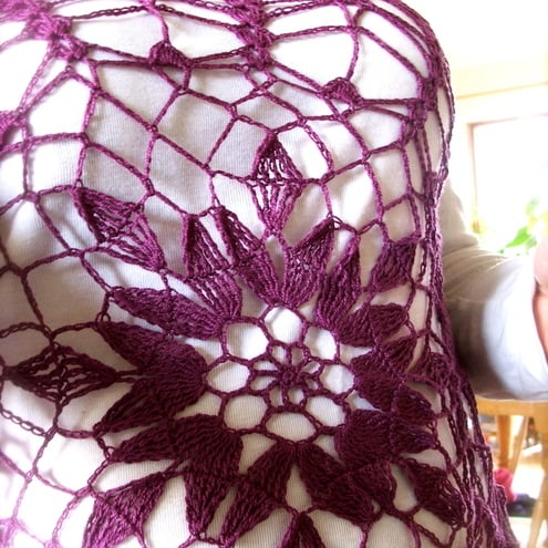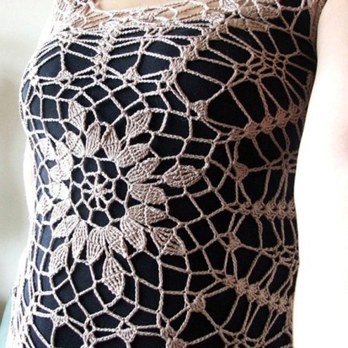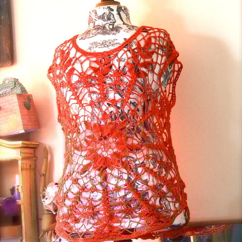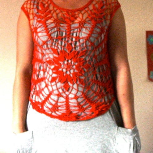 a cotton crochet top inspired by Japanese craft book, perfect for the summer but great for any time of the year as it looks lovely worn on dark vest...