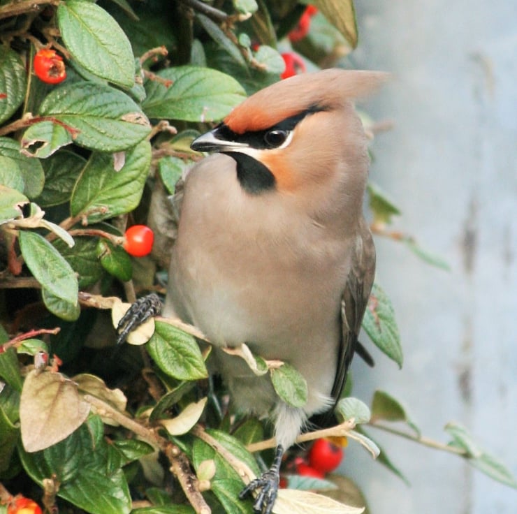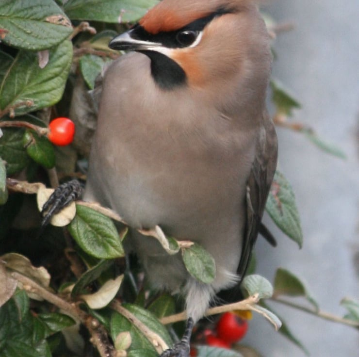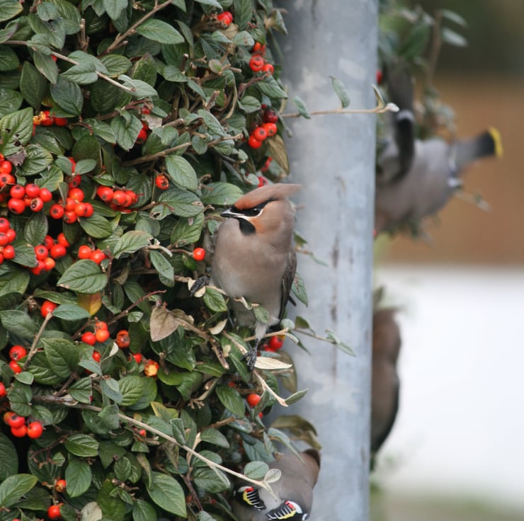 A rare site this far south west; a flock of 7 came into Falmouth and ate all the berries off this bush.