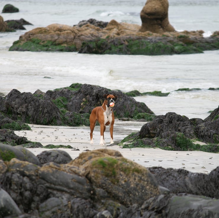 Out with the family on Coverack beach, and saw this dog fetching his ball.