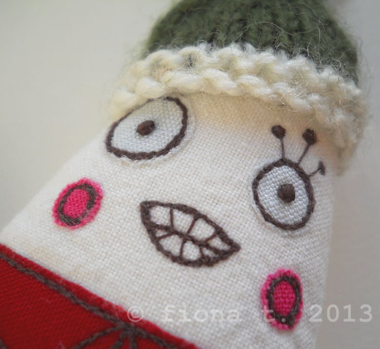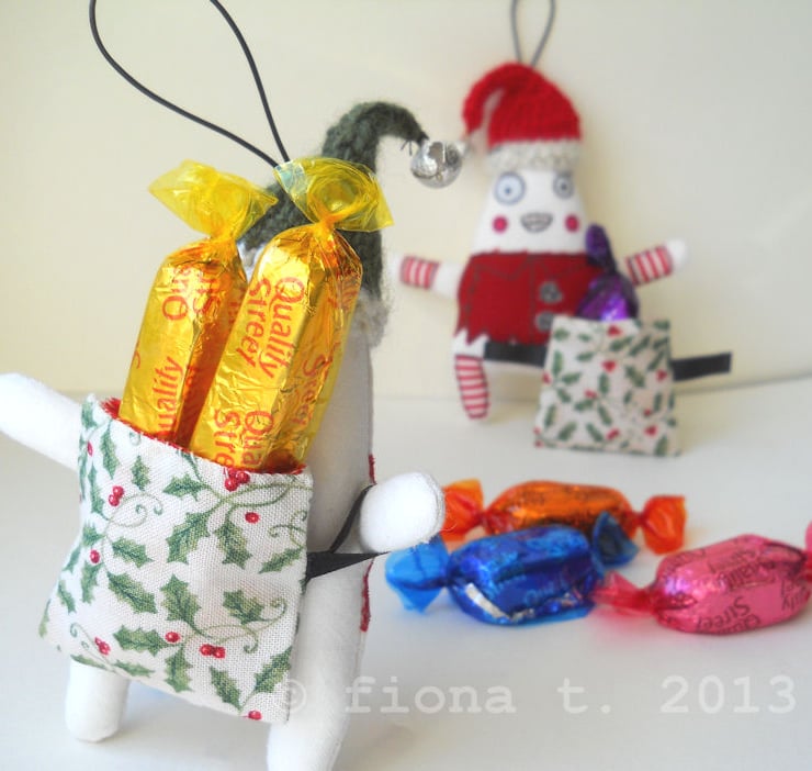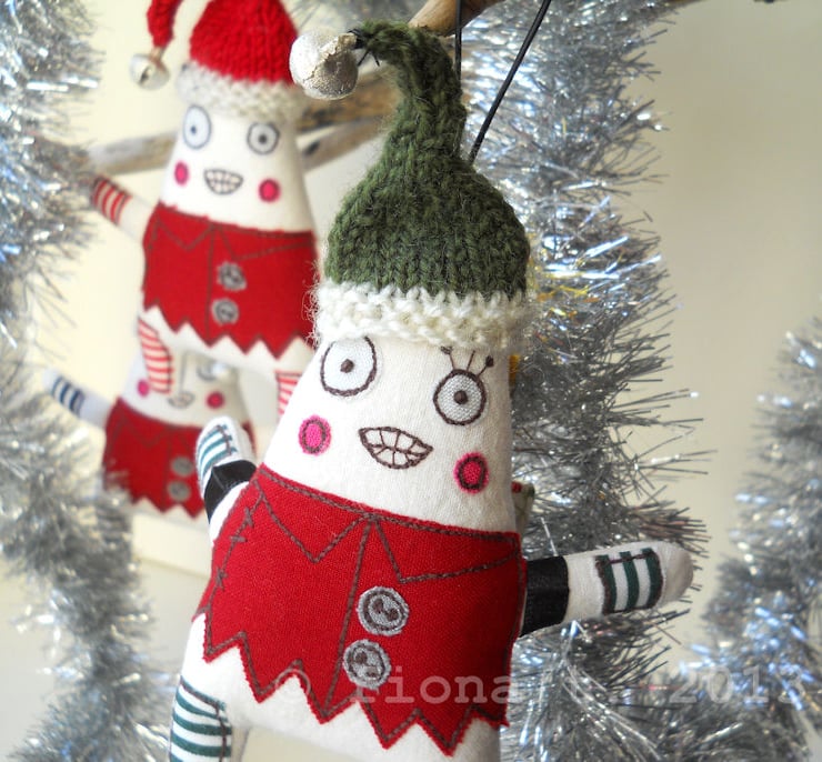 due to the very nature of free motion embroidery & handmade, each elf, and his accessories, will vary eeeever so slightly.