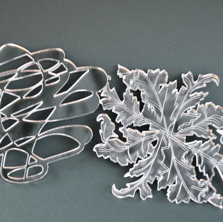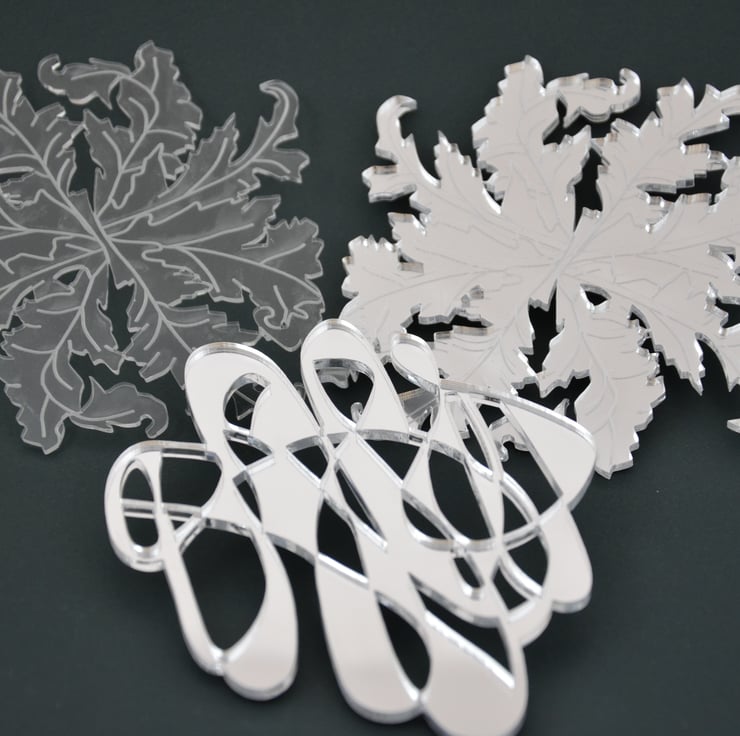 Original designs, laser cut into 3mm mirrored acrylic. These coasters are approximately 9.5cm square and come with clear, domed 'feet' to prevent them slipping when in use.