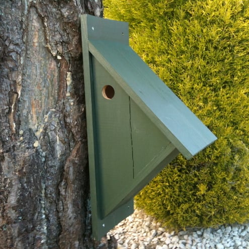 This solid wood bird box will have the birds flocking to your garden. This box is suitable for even the smallest garden. This box is easy to install using its pre-drilled fixing holes. The base has drainage holes to keep the nest dry, and the lid is attached with brass screws to allow easy access for cleaning. Inside, there is a 'ladder' to allow the chicks to get out, and ventilation slots along the roof. The box has been treated with Non Toxic, water based paint that is safe for birds. Buy soon before this great bird box flies off the shelf!