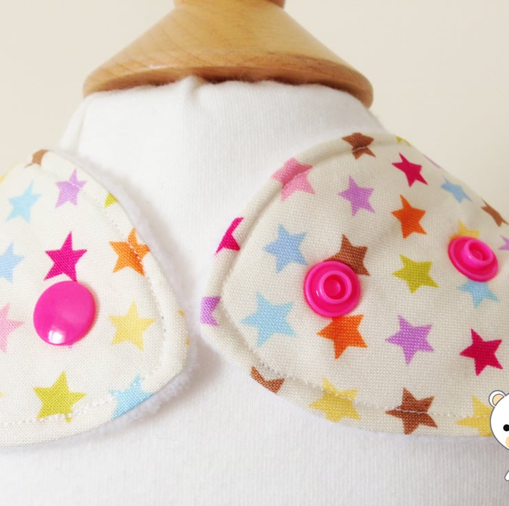 FASTENING PREFERENCE: Comes with colour co-ordinated Resin adjustable Popper Fastening, or upon request - securely over-stitched Velcro away from the babies skin.
