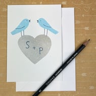 This listing is for one card and blank white envelope only. The printed area is about 8.5cm wide by 7.5cm tall. It has been screen printed by hand on to the middle of a 10cm by 10cm blank white square card.
