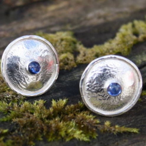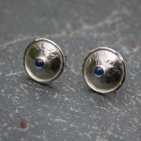 Small textured silver domed studs, set with very pretty blue sapphire cabs.