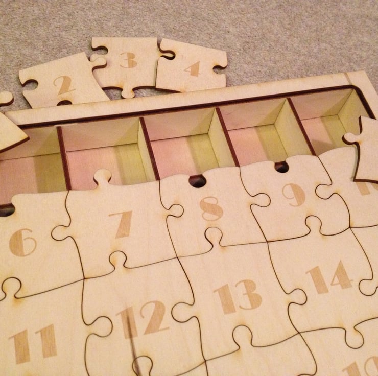 This advent calendar puzzle conceals a box with 25 compartments that can be filled with the sweets, gifts or messages of your choice - one for each day of Advent.