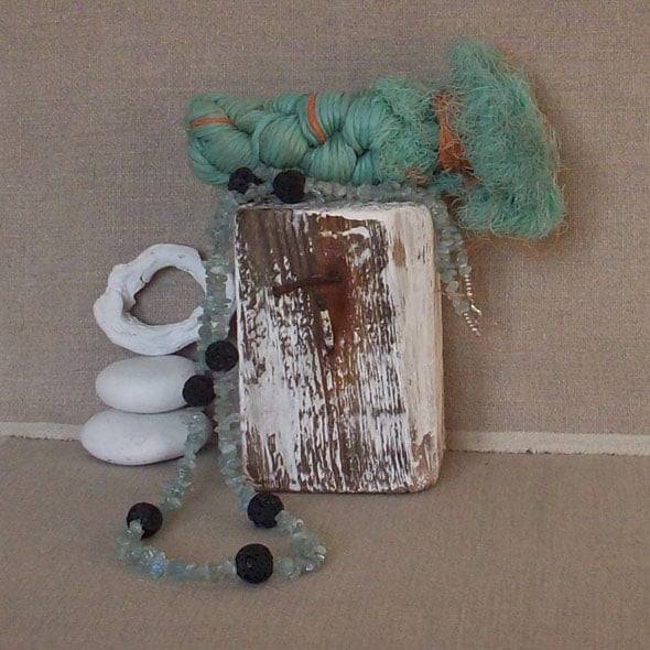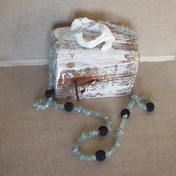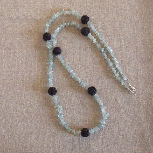 There's lovely contrast in this piece between the colour and texture of the stones, lava beads and baroque aquamarines. It's like the sea breaking on the rocks on a Cornish shore. Comes to you in a gift box. I use Special Delivery because then the seller and buyer are both covered by this tracked and insured service. Please contact me for multiple and non-UK postage as prices vary. Thanks for looking and supporting handmade!