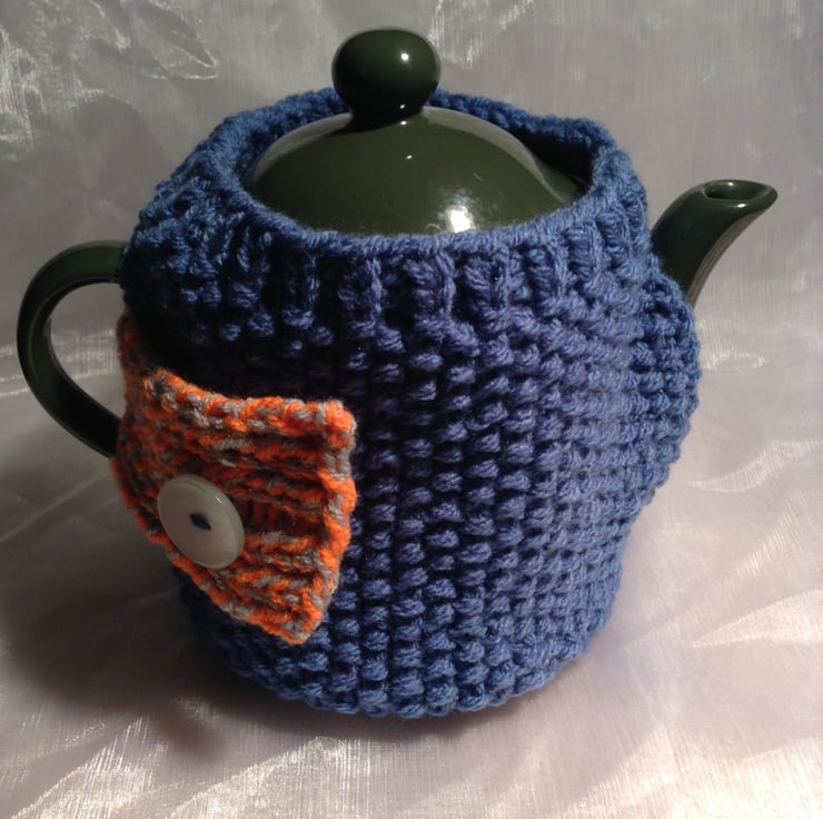 Pretty little knitted small teapot cosy. Double knitted has a button fixed 'belt' around the handle. Machine washable. Five to choose from, let us know which one you would like.