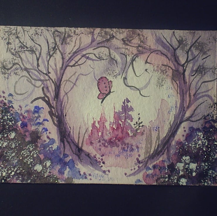 This is an original painting that has been created using quality materials. It will come in a clear polybag to protect it. This is an original and not a print . An aceo is a miniature painting that measures just 2.5" x 3.5" and is highly collectable. It can be framed or displayed in a photo album. This painting contains glitter.