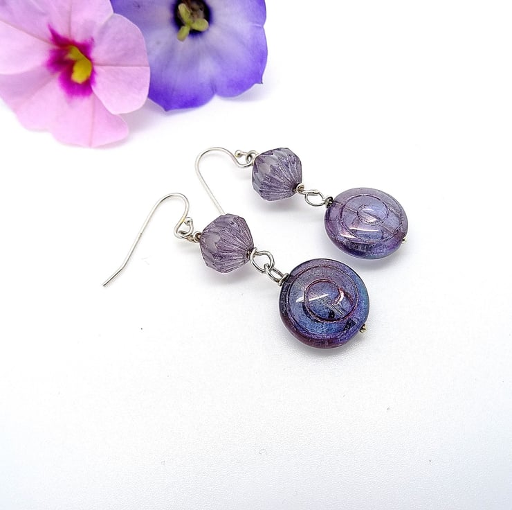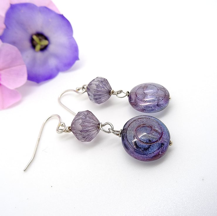 These are lovely earrings made from czech glass picasso beads with a lustre finish to them. They hang from sterling silver earwires. The earrings measure 4cm (1.1/2") from top of earwire. Please look in my shop as there is a matching bracelet. They are a one off piece so these are the earrings you will receive. They will arrive gift wrapped in tissue paper and an organza bag.