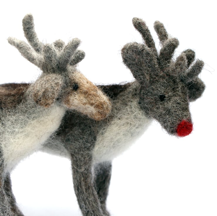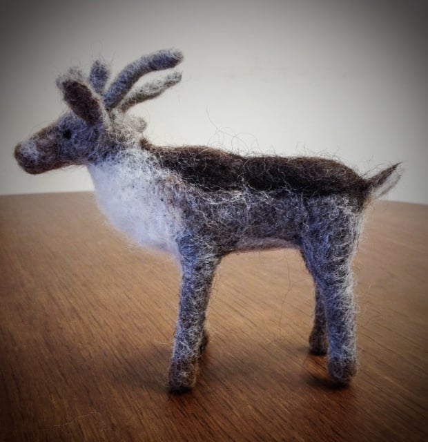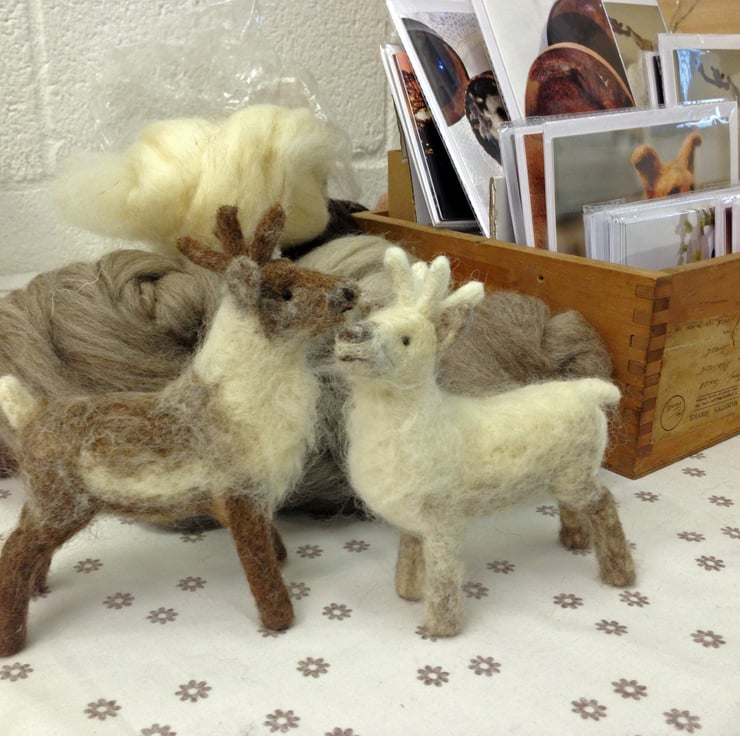 Each reindeer needle felt kits contain everything you need to make a small woollen reindeer: wool fleece, needle felting tools, needle and thread and beads for eyes, felting sponge, wire for antlers plus full written instructions with diagrams.