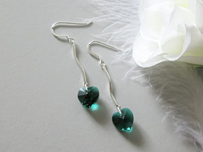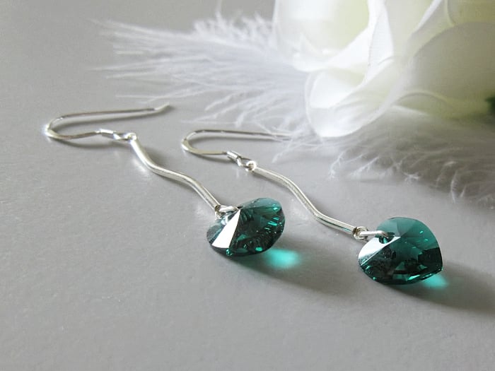 These very elegant earrings have been hand made using 10mm emerald green highest quality heart shaped crystals. These crystals are from the world respected crystal company in Austria.