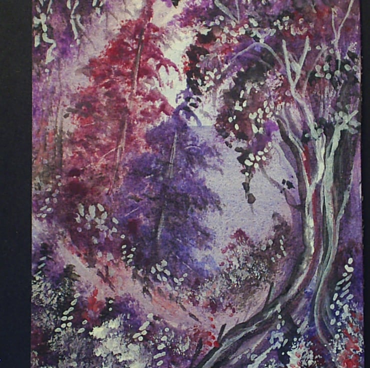 aceo SFA original miniature watercolour painting purple fantasy woodland