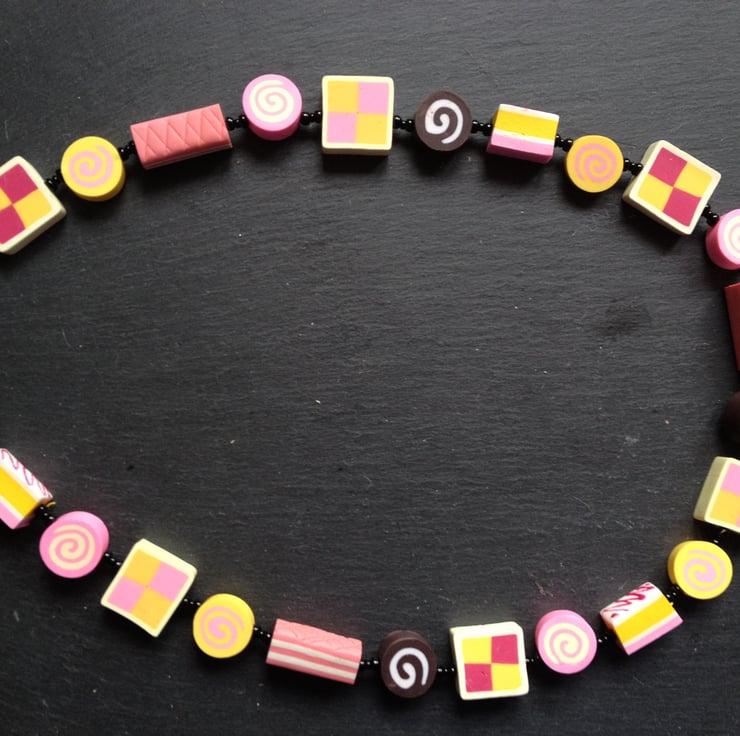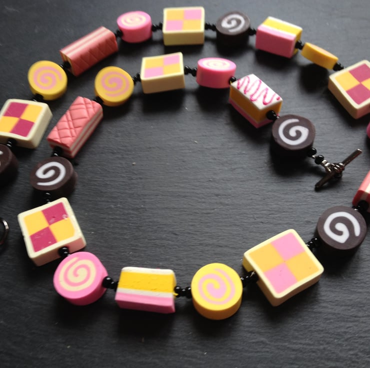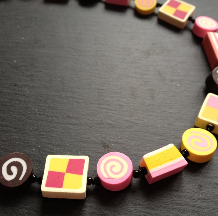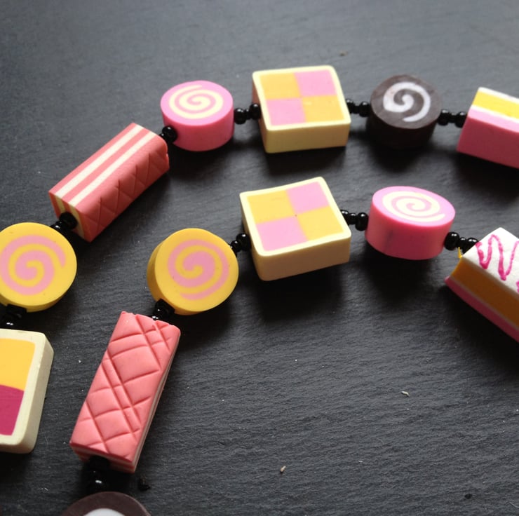 All of your tea time favourites are featured in this kitsch polymer clay necklace whiich would make an ideal present for a baking fan!
