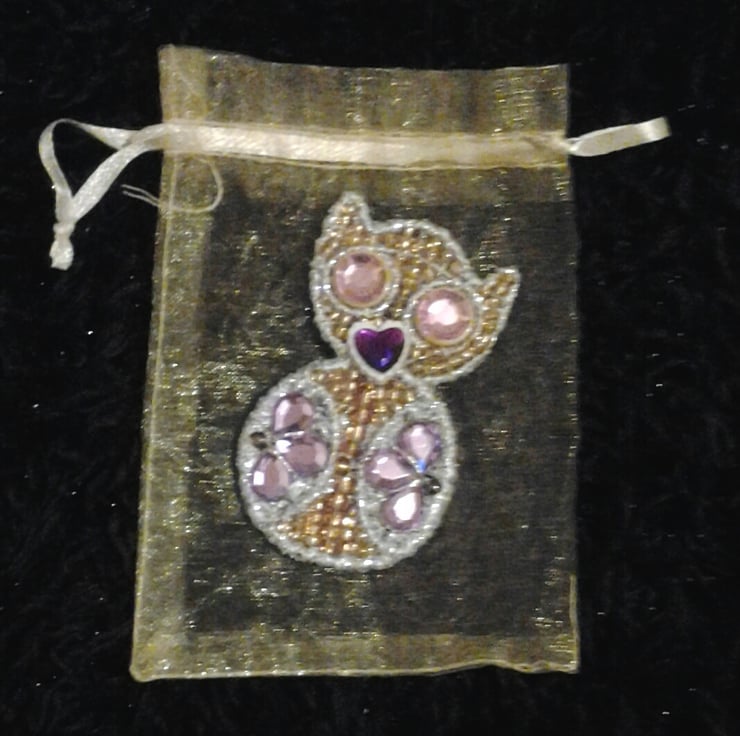 This item comes with a pretty organza pouch, perfect for keeping the brooch safe and clean or for presenting as a gift for someone special.