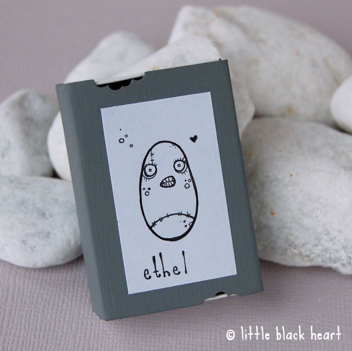 this is ethel. she used to be a regular rock, now she is a zombie rock.
