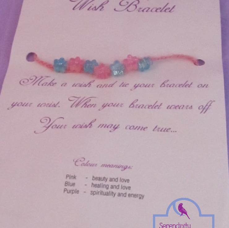 Make a wish and tie the bracelet on your wrist. When your bracelet falls off your wish may be granted.