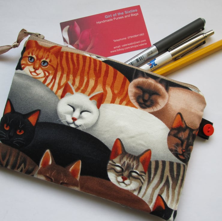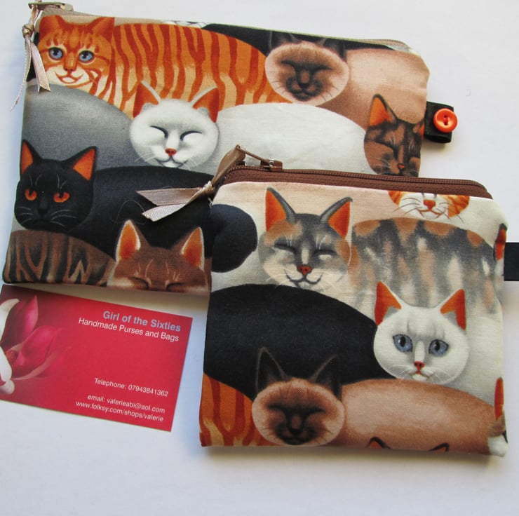 Pretty little cats design printed fabric coin purse, perfect for your coins, notes and cards and