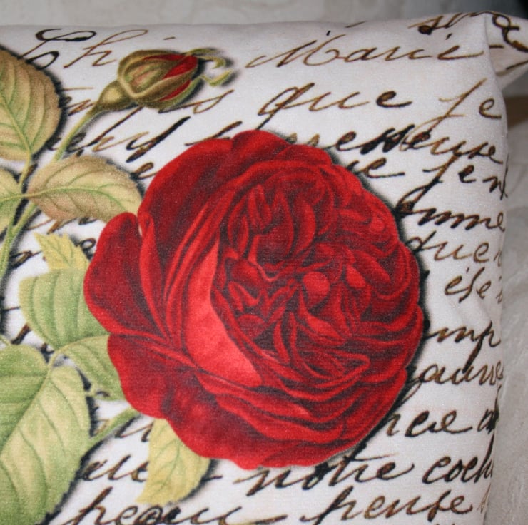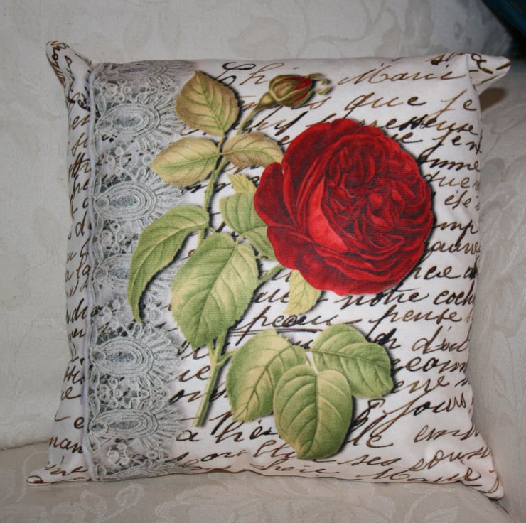 Cushion  Red Flower botany  lace handwritten cushion one of a kind