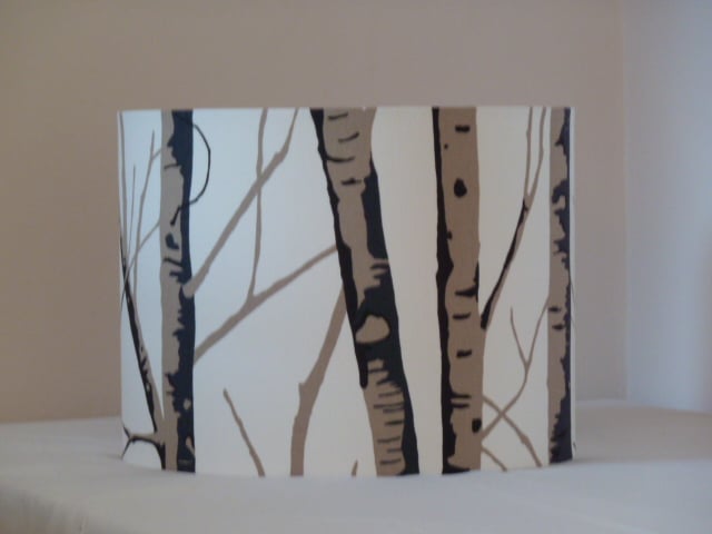 Handmade Drum Lamp covered in Prestigious Textiles 'Silver Birch' fabric.