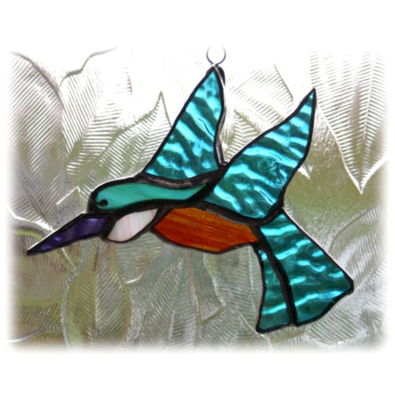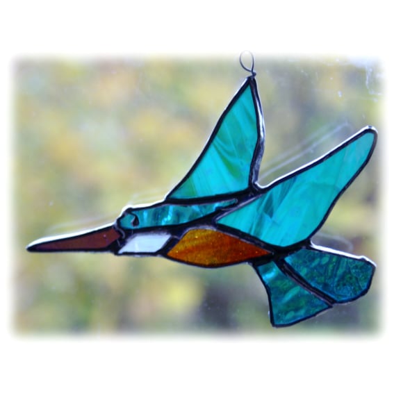 I am really pleased with this little bird. .It looks lovely hanging in the window where the different textures and iridescent colours of glass give it movement and sparkle as it catches the light.