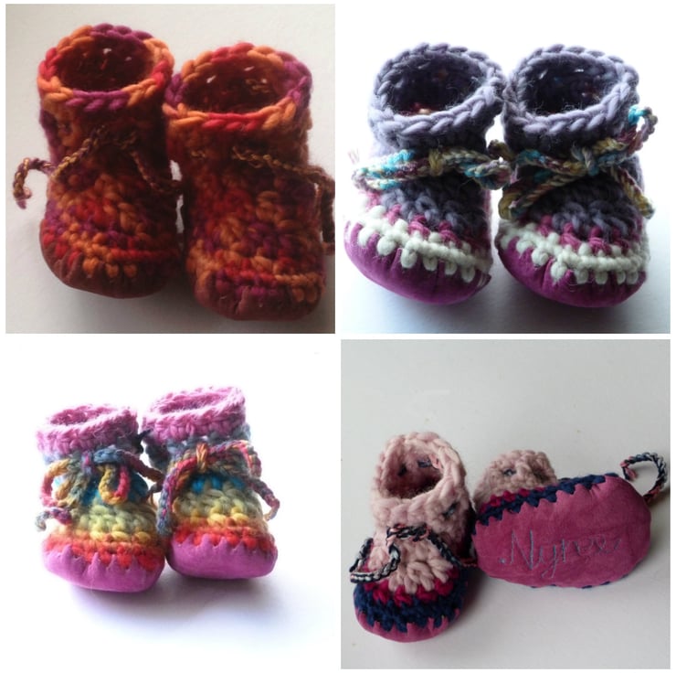 These funky little boots will keep your baby's feet snug and warm and add a dash of colour to any outfit. Warm woollen fabric with stretch for comfort and growing room plus a soft suede non-slip sole. A perfect gift for a baby boy or girl.