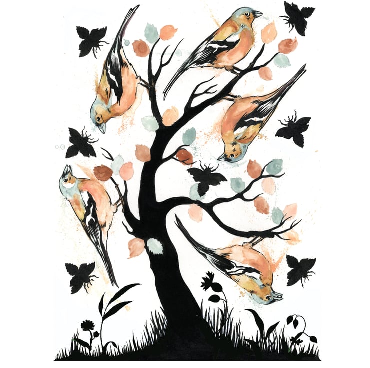 Bird art print - The Chaffinch Club A3 Print (11.69 by 16.54 in)