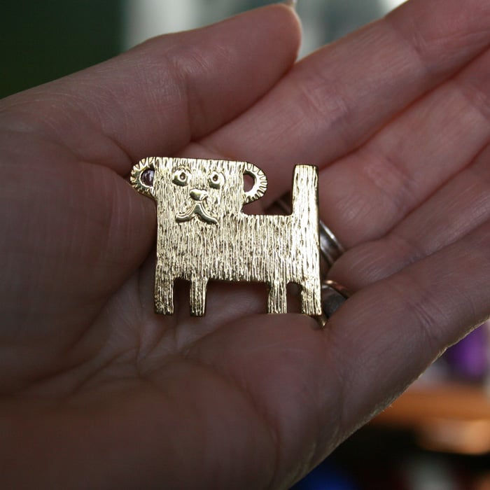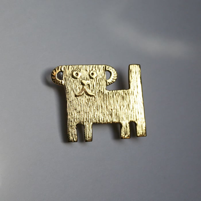 Tny dog brooch made from brass, with jug handle style ears , I think he looks a bit sad and in need of love......