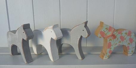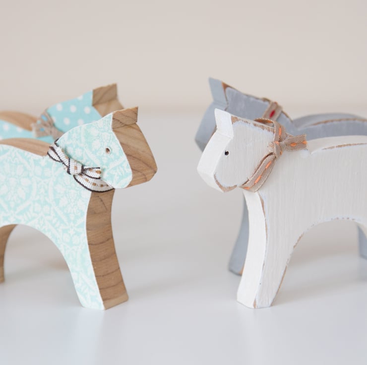 A beautiful simplistic horse inspired by Scandinavian design and shape. These can have tails attached if required and come either painted or in patterned paper with a little ribbon to finish each off, we do custom orders.