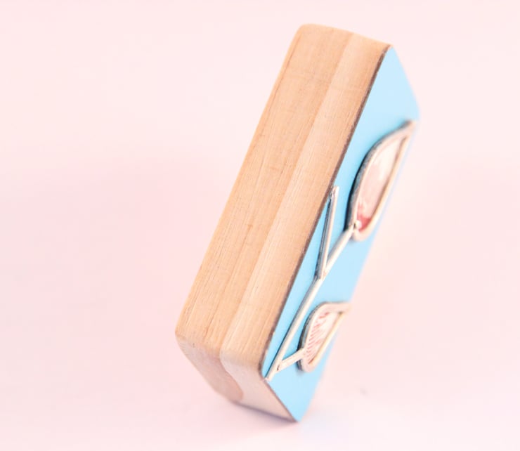 This funky chunky brooch is like a children's toy block. It's a fun a vibrant piece and looks great on coat lapels.