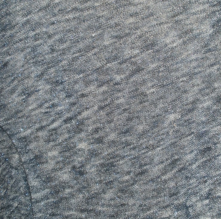 This is a monster! But only in terms of size - it's so lightweight that you wouldn't even know you were wearing it! It's knitted with three strands of yarn, two cotton yarns barely the thickness of sewing cotton, and a third very fine silver strand. It's 104 inches wide at its widest and 58 inches at its longest. Absolutely stunning.