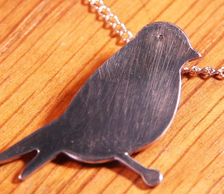 This handmade silhouette pendant hangs beautifully round your neck. And is inspired by the Goldfinch.