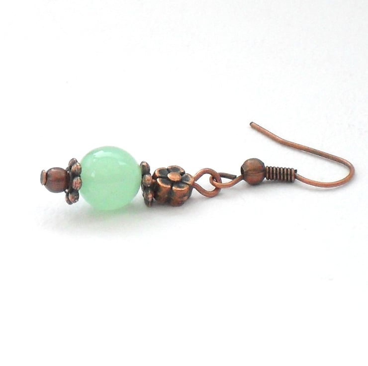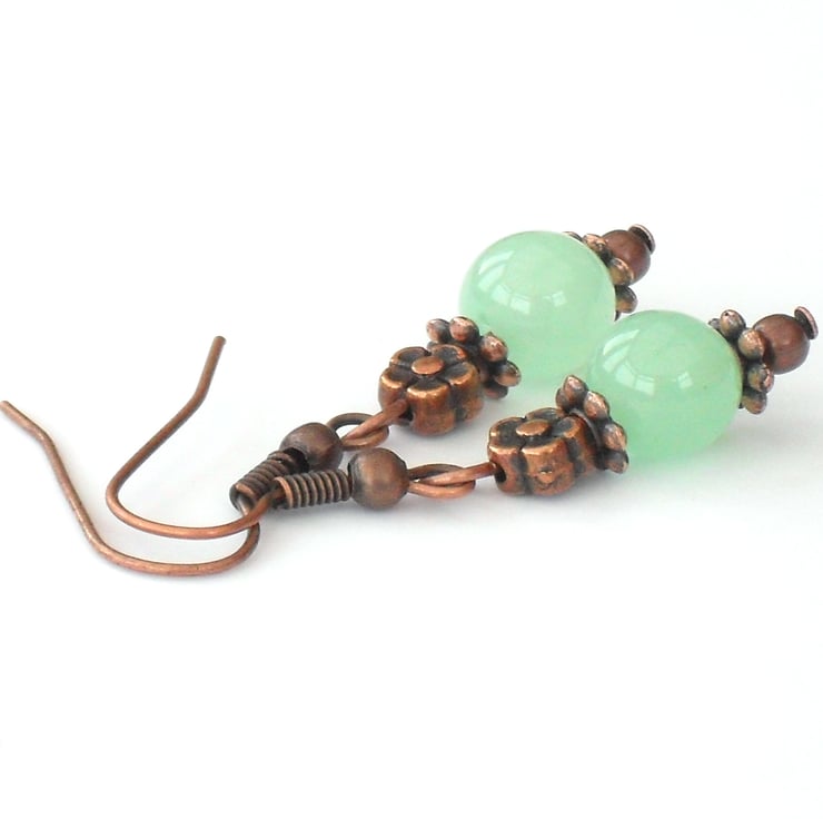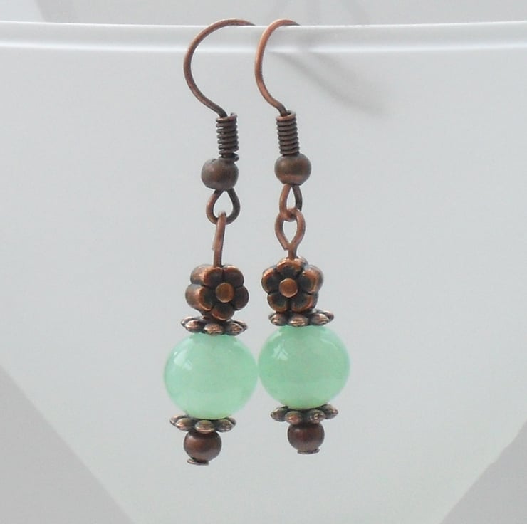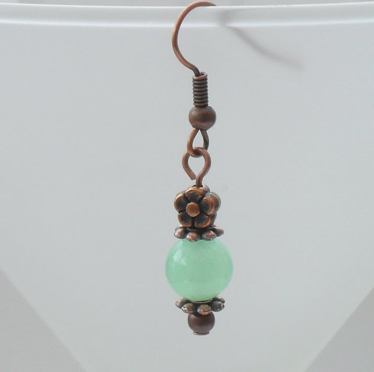The 8 mm jade semi-precious gemstones that I've used in these handmade earrings and a very pretty shade of green.