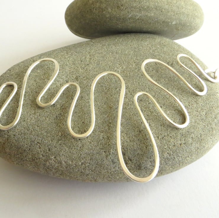 The silver wave necklace is made to order and the wire is shaped by hand, this means you will get a unique piece as each one I make is very slightly different, although the basic shape and size will remain the same. Please allow up to 5 working days for me to make this necklace to order, although it will usually be much quicker.