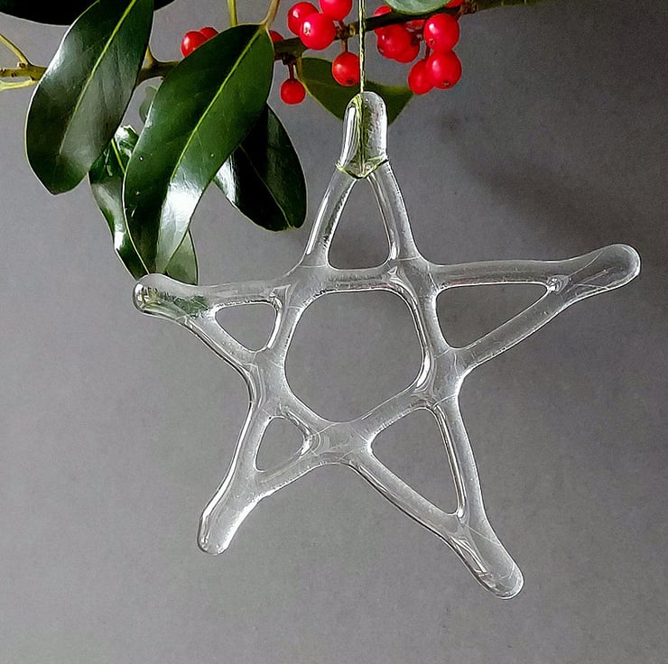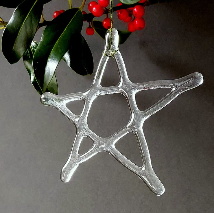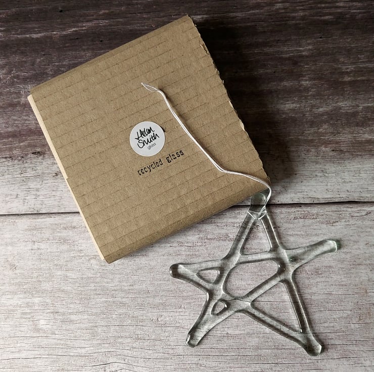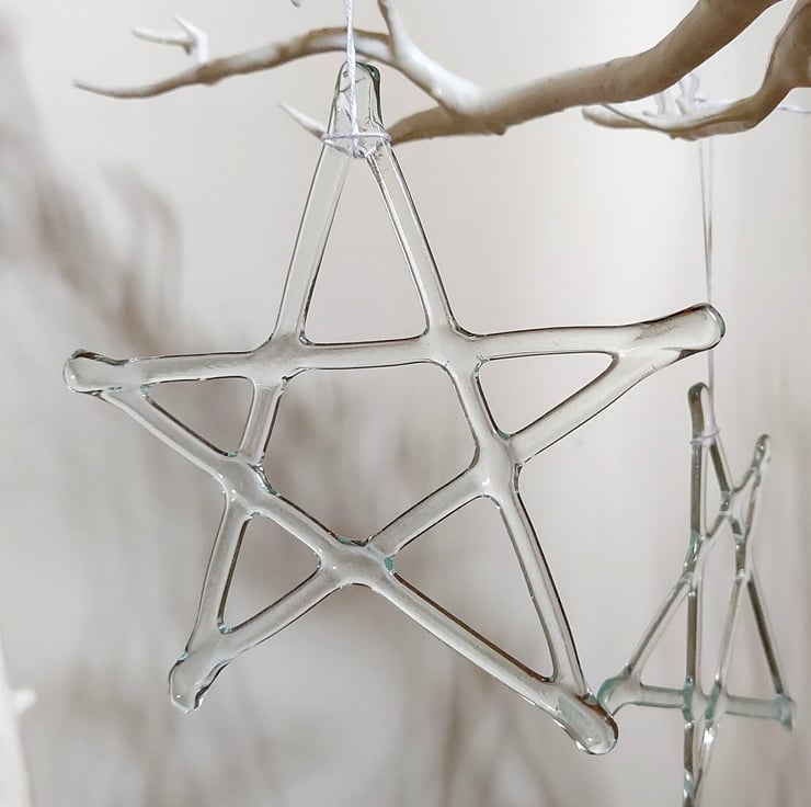 A clear fused recycled glass star - the perfect Christmas tree decoration, or lovely as a suncatcher in your window at any time of year.