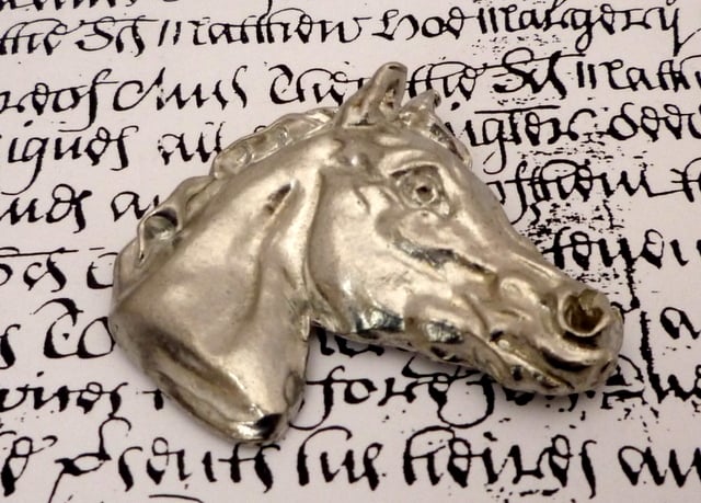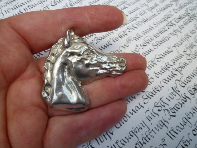 Beautifully sculpted horses head brooch hand made in fine English pewter.