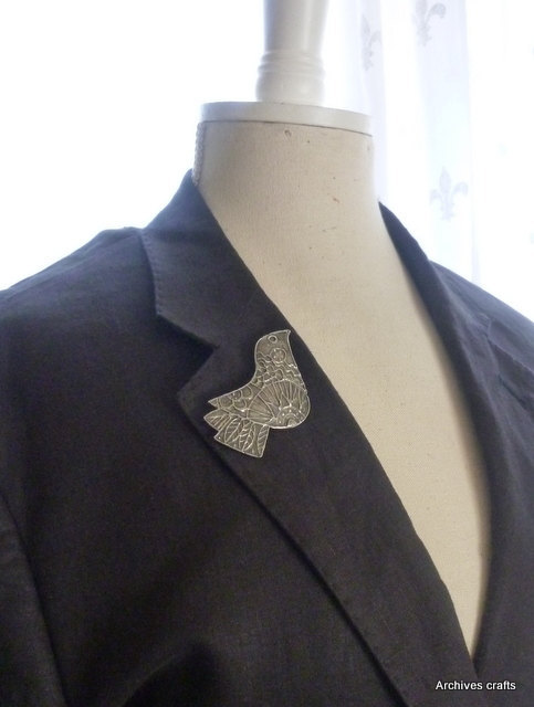 Dove of Peace brooch handmade in English pewter. This is a beautiful brooch and would make a thoughtful and meaningful gift . A skilfully engraved and tooled relief sun design fills the outline of this bird.