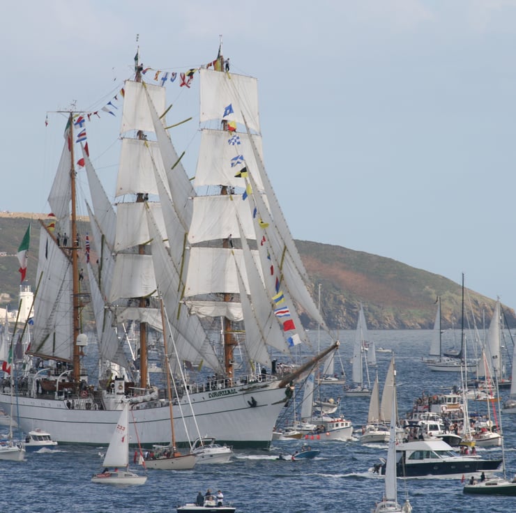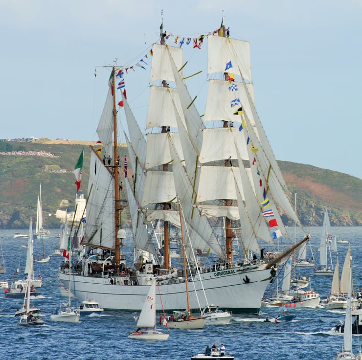 Watching the magnificent Tall Ships in Falmouth Bay on their Parade of Sail, before the start of the race to Funchal.