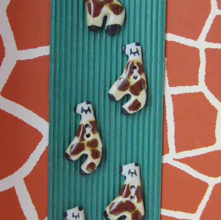 Each ceramic giraffe button is flat backed and measures 25 x 27 mm. They are handmade in South Africa and are fully washable.