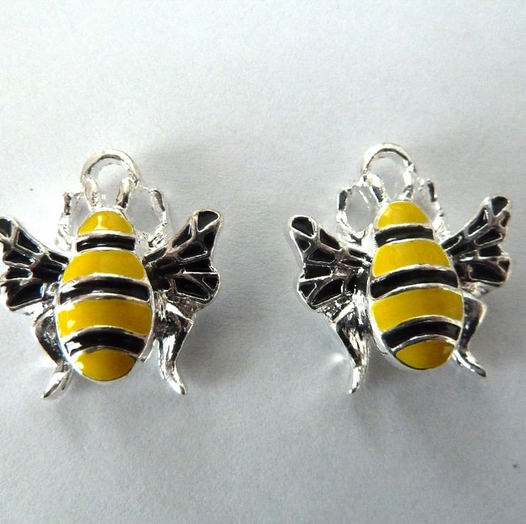 A pack of 2 enamel bee charms.