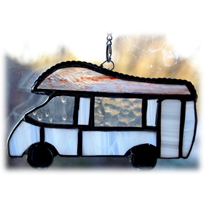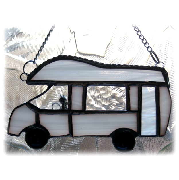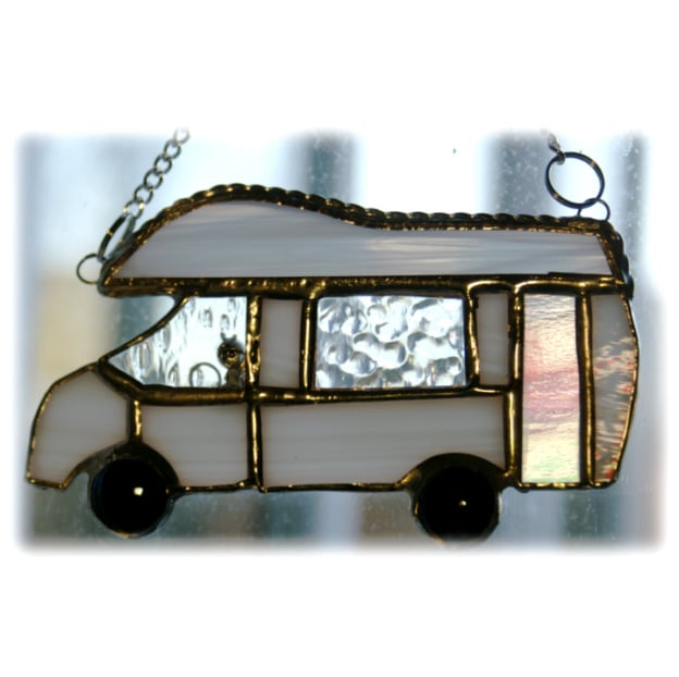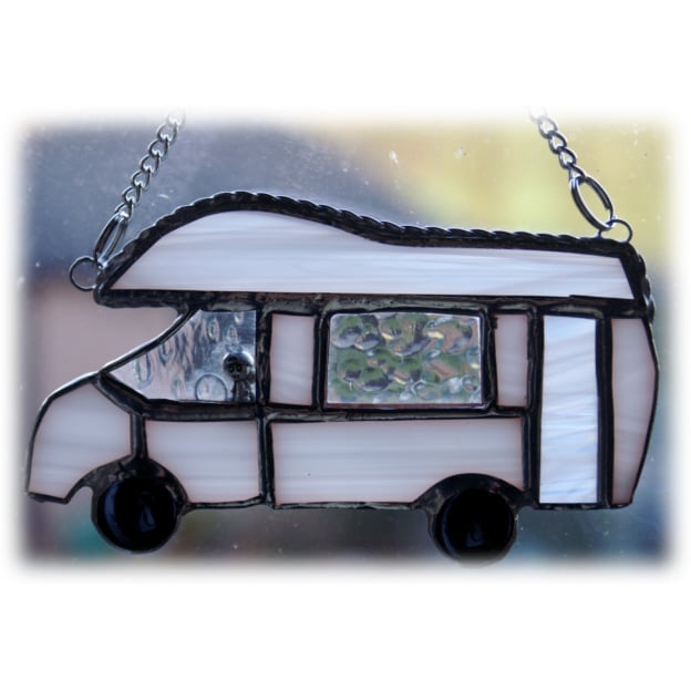 I have a motorhome of my own which is why I make motorhome and caravan suncatchers. I have a stained glass version of my own Tandy McLouis which hangs in the windscreen whenever we are camped.
