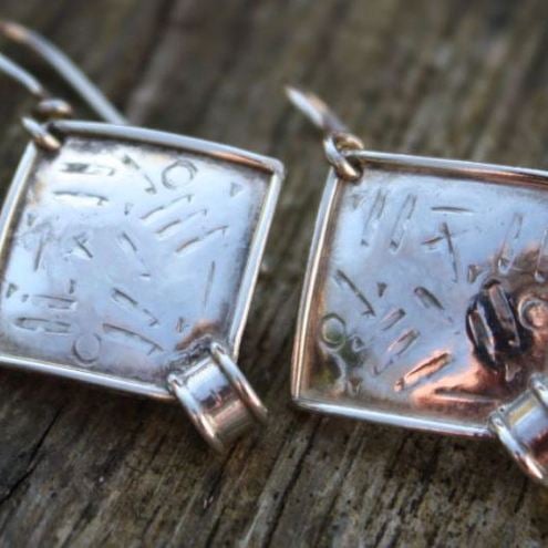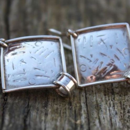 These are beaten and textured with punches, the marks hinting at ancient signs and symbols.