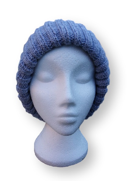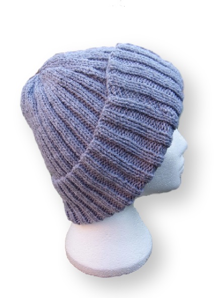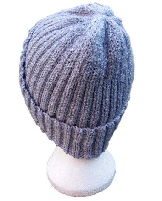 Traditional style hand knitted beanie hat. Knitted in silver grey it would suit male or female but highly suitable for the man who works outside or in cold environments.