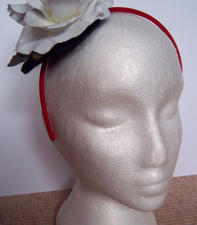 Handmade fascinator with woolen fabric base and large vintage fake flower. Perfect for weddings and parties. Alice band is a standard size. Any questions, please ask.