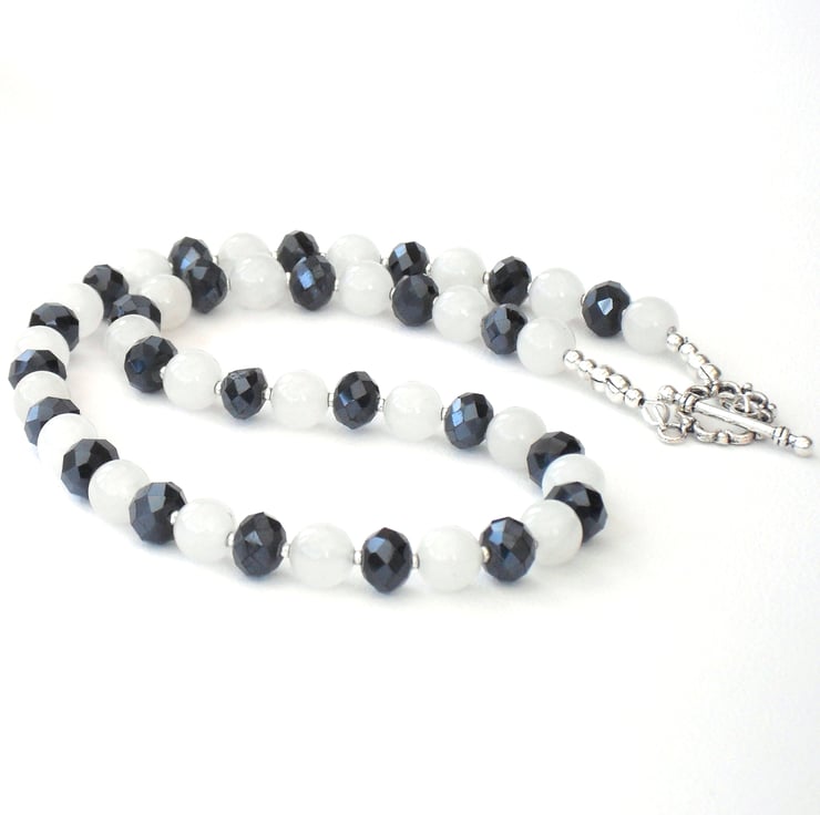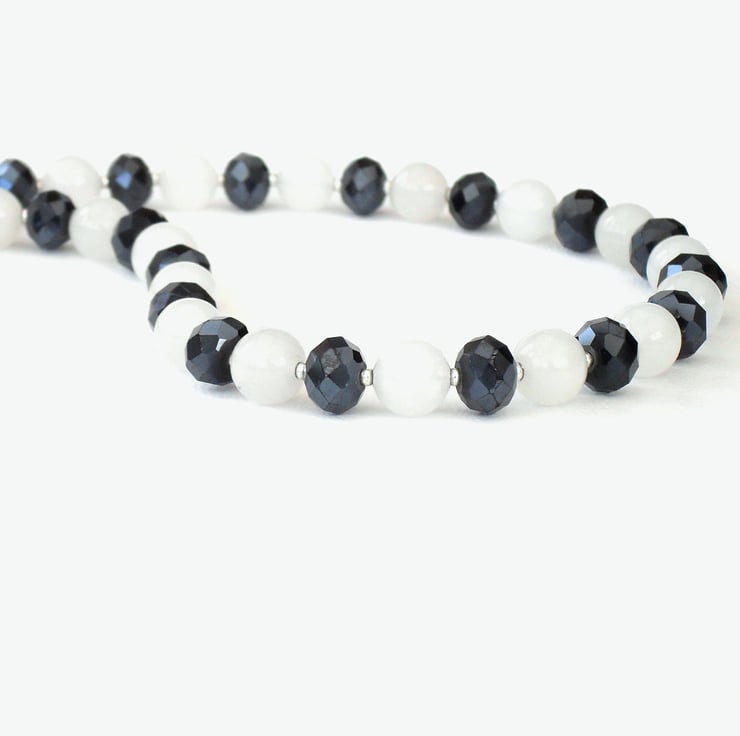 I love working with semi-precious gemstones and crystals, and the white jade and jet crystal are total opposites and look great together!