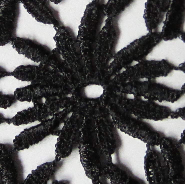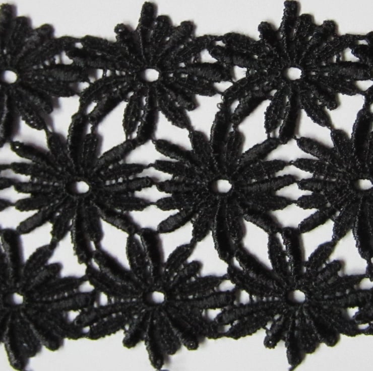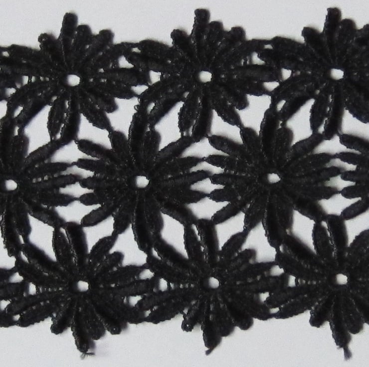 Half a metre of 3 rows of black daisies that can be cut and used individually. The lot consists of 54 daisies each measuring 2.5 x 2.5 cm approx..