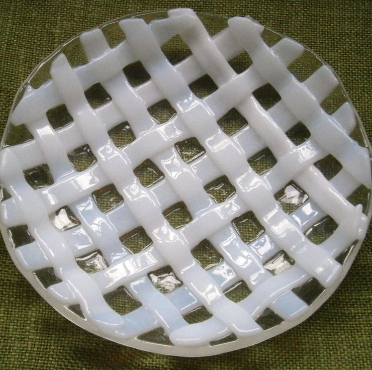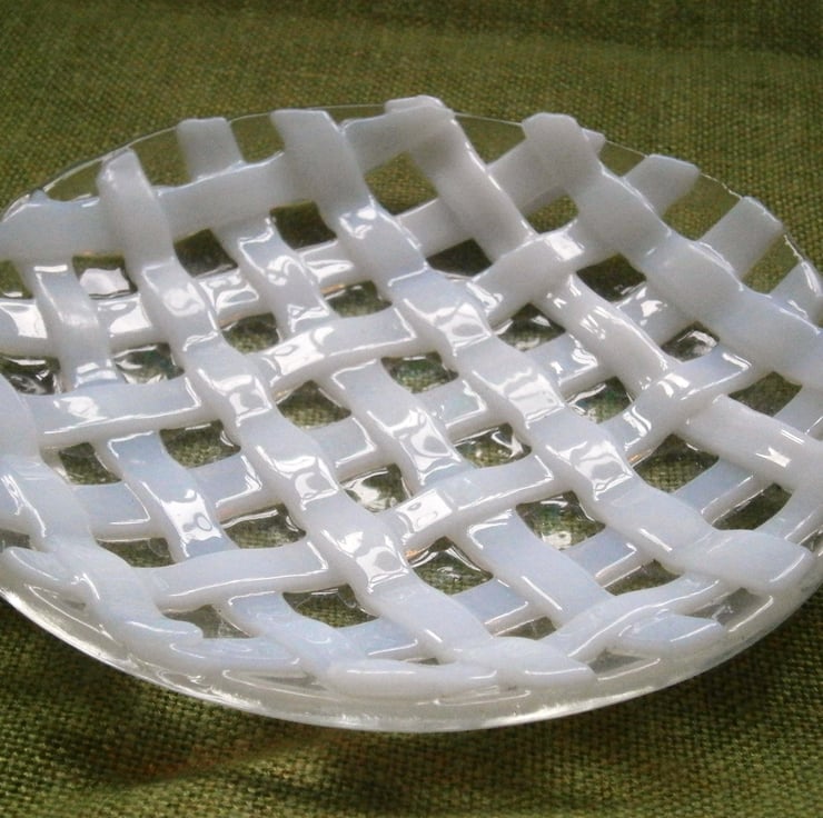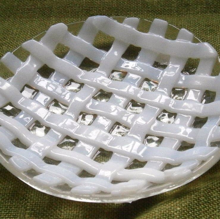 Shallow dish made from White woven glass on a clear glass base