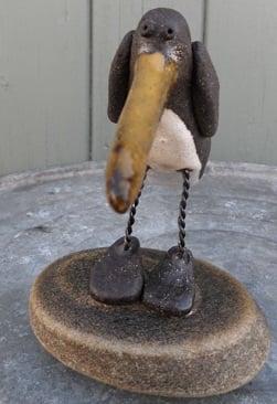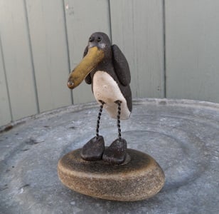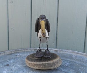 This bird is about 5 inches high (including legs and pebble) and will arrive in a gift box.
