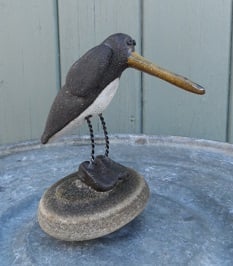 Pottery Oystercatcher, perched on a pebble from the river Tay. Handmade at the Station cat Pottery, each Oystercatcher is unique.