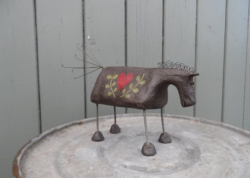 Ceramic horse, Handmade at the Station Cat Pottery in a primitive, folksy style.
